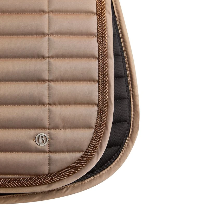 The B Vertigo Quinn saddle pad is made from high density material that perfectly cushions your movements. Quick-drying material wicks away any moisture. Rectangular quilting and three rows of cord around the edges make for a stunning look. The anatomically shaped spine brings a sporty touch. Pair this saddle pad with our B Vertigo Quinn ear net for a full look! Also available as all purpose version.