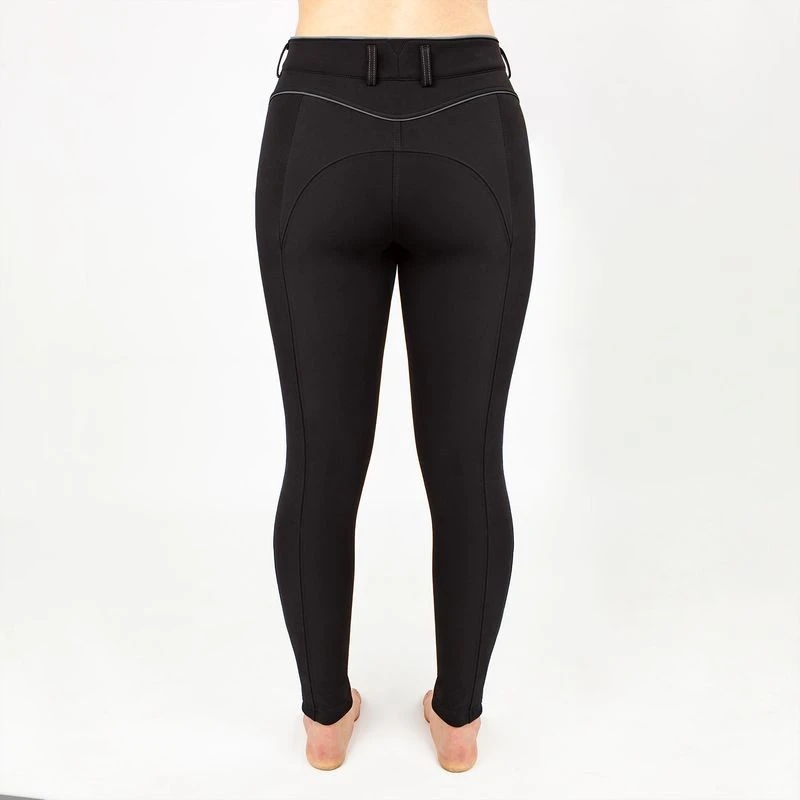 These breeches are made of a superior high end 4-way woven fabric that has a bonded layer of fleece on the interior to give you a polished look, but with the warmth you need. They are wind, water, snow and mud resistant. There are two traditional hand pockets for you essential items, all in an ultra flattering side zip design with two zip assist snaps.