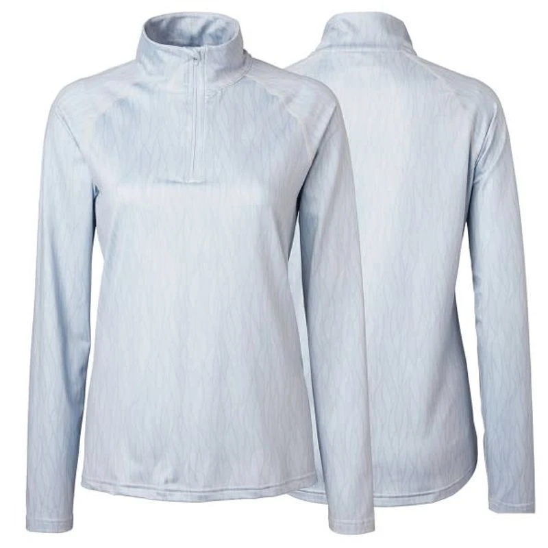 Functional, full stretch tech top in an all over print. Features soft brushed inside, quick – drying fabric and high collar with 1/3 front zipper and lock zipper pull.